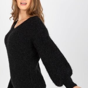 Sweter damski z długim rękawem oraz dekoltem w serek. Propozycja na wiele okazji.
