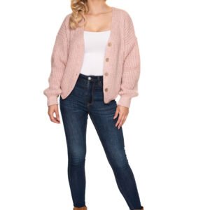 Luźny sweter oversize z długim rękawem. Sweter zapinany na drewniane guziki.