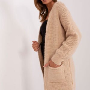 Ten kardigan to doskonały wybór na co dzień. Wykonany z wysokiej jakości akrylu, jest nie tylko przyjemny w noszeniu, ale także trwały. Ma długi rękaw, który zapewnia ciepło w chłodniejsze dni. Kardigan nie ma zapięcia, co nadaje mu swobodny i luźny charakter. Po bokach posiada praktyczne kieszenie wsuwane, które są zarówno wygodne, jak i stylowe. Jego gładki wzór sprawia, że pasuje do wielu różnych stylizacji. Długość swetra sięga przed kolano, co dodaje mu elegancji i nadaje się idealnie do noszenia na co dzień. To must-have w szafie każdej osoby ceniącej komfort i styl.