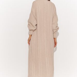 Ten długi sweter damski typu kardigan to absolutny must-have na chłodniejsze dni. Jego otwarty fason i szerokie rękawy zakończone ściągaczami zapewniają komfort i swobodę ruchów. Subtelny splot w warkocze dodaje mu uroku i unikalności, co sprawia, że jest doskonałym wyborem dla kobiet ceniących oryginalne i eleganckie detale. Bez wątpienia będzie Twoim ulubionym elementem garderoby podczas chłodniejszych dni. Sweter występuje w kilku atrakcyjnych kolorach: cappuccino, czarnym, miodowym, nude i stalowym. Załóż do niego jeansy i kozaki, aby stworzyć casualowy, ale stylowy look na co dzień. Możesz też zestawić go z eleganckimi spodniami i szpilkami na bardziej formalne okazje. Niezależnie od tego, jak go będziesz nosić, z pewnością go pokochasz!.