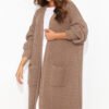 Lekki otwarty sweter damski, który doskonale sprawdzi się w stylizacjach tworzonych przez okrągły rok. Z przodu wyposażony w dwie praktyczne kieszenie wsuwane, jest zarówno funkcjonalny, jak i stylowy. Jego długość sięgająca za kolano dodaje mu eleganckiej prezencji. Kobiecy sweter bez guzików występuje w czterech klasycznych odcieniach, co czyni go wszechstronnym i łatwym do dopasowania do wielu ciekawych looków. Idealny na chłodniejsze wieczory czy wietrzne dni, stanowi doskonałe uzupełnienie garderoby dla kobiet, które cenią wygodę i ponadczasową elegancję. Założysz go do pracy czy spędzisz w nim aktywny weekend poza miastem.
