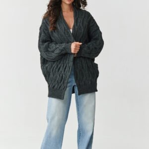 Stylowy, ciepły i niezwykle wygodny kardigan damski to must-have w każdej jesienno-zimowej garderobie. Wykonany z wysokiej jakości przędzy o składzie 85% akryl i 15% poliamid, zachwyca miękkością, trwałością i odpornością na deformacje. Charakterystyczny gruby splot w formie warkoczowych plecionek nadaje mu niepowtarzalnego charakteru i sprawia, że każda stylizacja wygląda modnie i przytulnie. Dzięki oversizeowemu krojowi sweter gwarantuje swobodę ruchów i komfort noszenia, a brak zapięcia sprawia, że można go łatwo zestawiać z T-shirtem, topem czy elegancką koszulą. To doskonała propozycja zarówno na co dzień, jak i na chłodniejsze wieczory. Kardigan dostępny jest w kilku bazowych odcieniach: beżowy melanż, cappuccino, czarny, grafitowy melanż oraz szary melanż, dzięki temu każda kobieta znajdzie kolor dopasowany do swojego stylu.