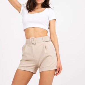 Eleganckie szorty damskie, zapinane na zamek i guzik. Po bokach kieszenie wsuwane. Do kompletu w jednakowym kolorze pasek. Idealne na wiele okazji.