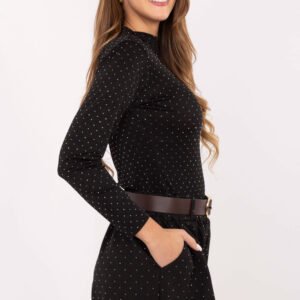 Stylowe materiałowe szorty damskie o eleganckim kroju, wykonane z wysokiej jakości wiskozy z dodatkiem elastanu, która zapewnia lekkość, przewiewność i komfort noszenia. Model ma wysoki stan oraz szerokie nogawki, dzięki czemu pięknie podkreśla talię i optycznie wysmukla sylwetkę. W pasie wszyta została elastyczna guma gwarantująca idealne dopasowanie, a dodatkowy zapinany pasek umożliwia podkreślenie kobiecej figury. Szorty mają boczne, wsuwane kieszenie oraz podszewkę, co zwiększa komfort użytkowania. Całą powierzchnię zdobią błyszczące dżety, które nadają całości wyjątkowego charakteru i eleganckiego blasku. To doskonała propozycja na okazje wizytowe i imprezy, idealne połączenie elegancji, stylu i wygody.