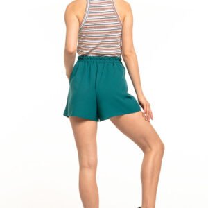 Letnie spodenki z dwiema kieszeniami. Spodenki mają elastyczną wstawkę z tyłu paska dla lepszego dopasowania i łatwiejszego noszenia. Z przodu dwie zakładki i pasek do wiązania lub pozostawienia luźno. Nasza propozycja na ciepłe wiosenne i letnie dni.