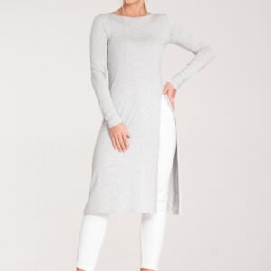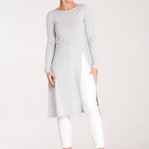 Tunika z długim rękawem oraz okrągłym dekoltem. Z boku efektowne rozcięcie. Idealna propozycja do wielu stylizacji.