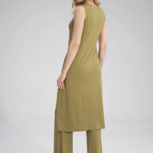 Letnia tunika midi. Bez rękawów, bez kieszeni. Z przodu dwa ozdobne rozcięcia.