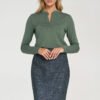 Elegancka bluzka damska o kroju regular wykonana z delikatnej, przyjemnej w dotyku wiskozy. Model posiada długi rękaw zakończony szerokim mankietem z ozdobnymi guzikami, który dodaje całości subtelnej elegancji. Bluzka jest wkładana przez głowę i wyróżnia się szeroką szarfą do dowolnego wiązania pod szyją, można ją zawiązać w kokardę, puścić luźno lub owinąć wokół szyi, tworząc różne stylizacje. To uniwersalny element garderoby, idealny zarówno do pracy, jak i na wyjątkowe okazje.