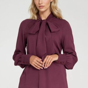 Elegancka bluzka damska o kroju regular wykonana z delikatnej, przyjemnej w dotyku wiskozy. Model posiada długi rękaw zakończony szerokim mankietem z ozdobnymi guzikami, który dodaje całości subtelnej elegancji. Bluzka jest wkładana przez głowę i wyróżnia się szeroką szarfą do dowolnego wiązania pod szyją, można ją zawiązać w kokardę, puścić luźno lub owinąć wokół szyi, tworząc różne stylizacje. To uniwersalny element garderoby, idealny zarówno do pracy, jak i na wyjątkowe okazje.