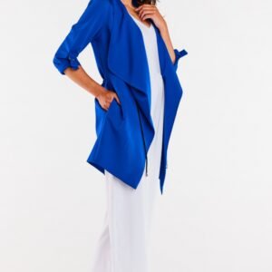 Luźny żakiet o surdutowym kroju z długimi rękawami. Rękawy mają ozdobne aplikacje wykonane z metalu bez niklu, dzięki czemu można je podwinąć. Produkt zaprojektowany i wyprodukowany w Polsce.