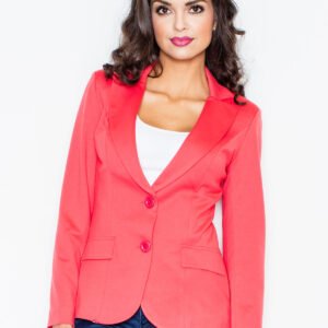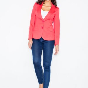 Klasyczny żakiet na podszewce w kontrastowym kolorze. Mankiety można wywinąć. Zapinany na dwa guziki, kołnierz wykładany. Bardzo ładnie układa się na sylwetce. Pozycja polecana do każdej stylizacji: idealnie komponować się będzie zarówno z elegancką spódnicą jak i jeansami.